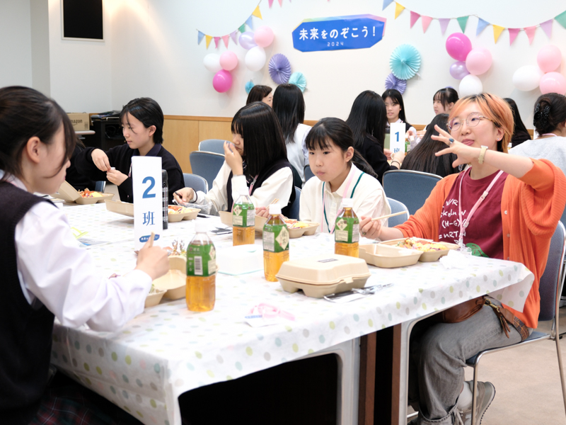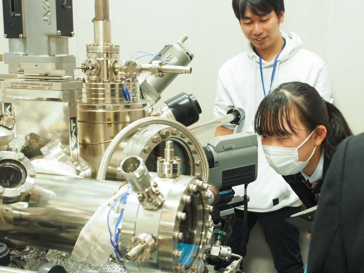 「未来をのぞこう!」の午前中は、物性研の一般公開を大学院生がご案内します。 また、一般公開では非公開の実験室の中にも入って、実際に日々研究が行われている実験装置を見たり、普段の研究の様子などを聞くことができます。見学ツアーの後は、大学院生・研究者とランチ懇談会を行います。進学のことはもちろん、その先の理系のお仕事についても、どんどん聞いてください!